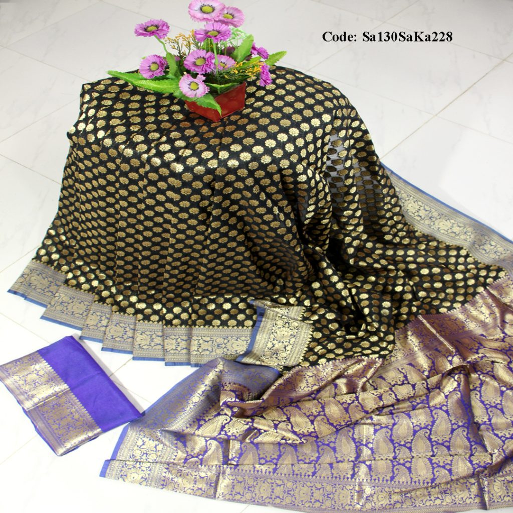 সিল্ক কাতান শাড়ি ব্লাউস পিসসহ