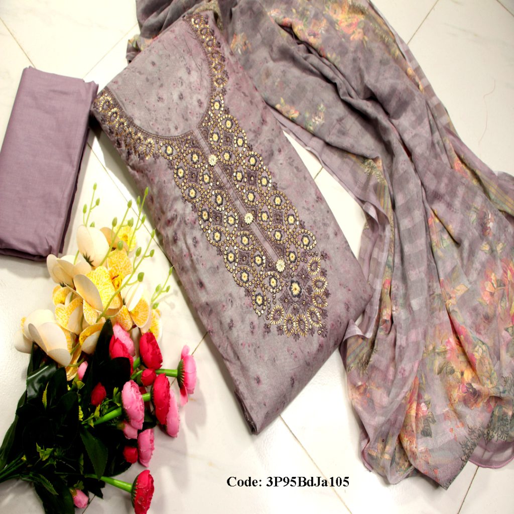 জমজম বু‌টিক ড্রেস জামা ও ওড়নার কাজ: এ্যাম‌ব্রোডা‌রি ও সি‌কু‌য়ে‌ন্সের কাজ জামার কাপড়: প্রিমিয়াম জমজম সফ্ট কটন