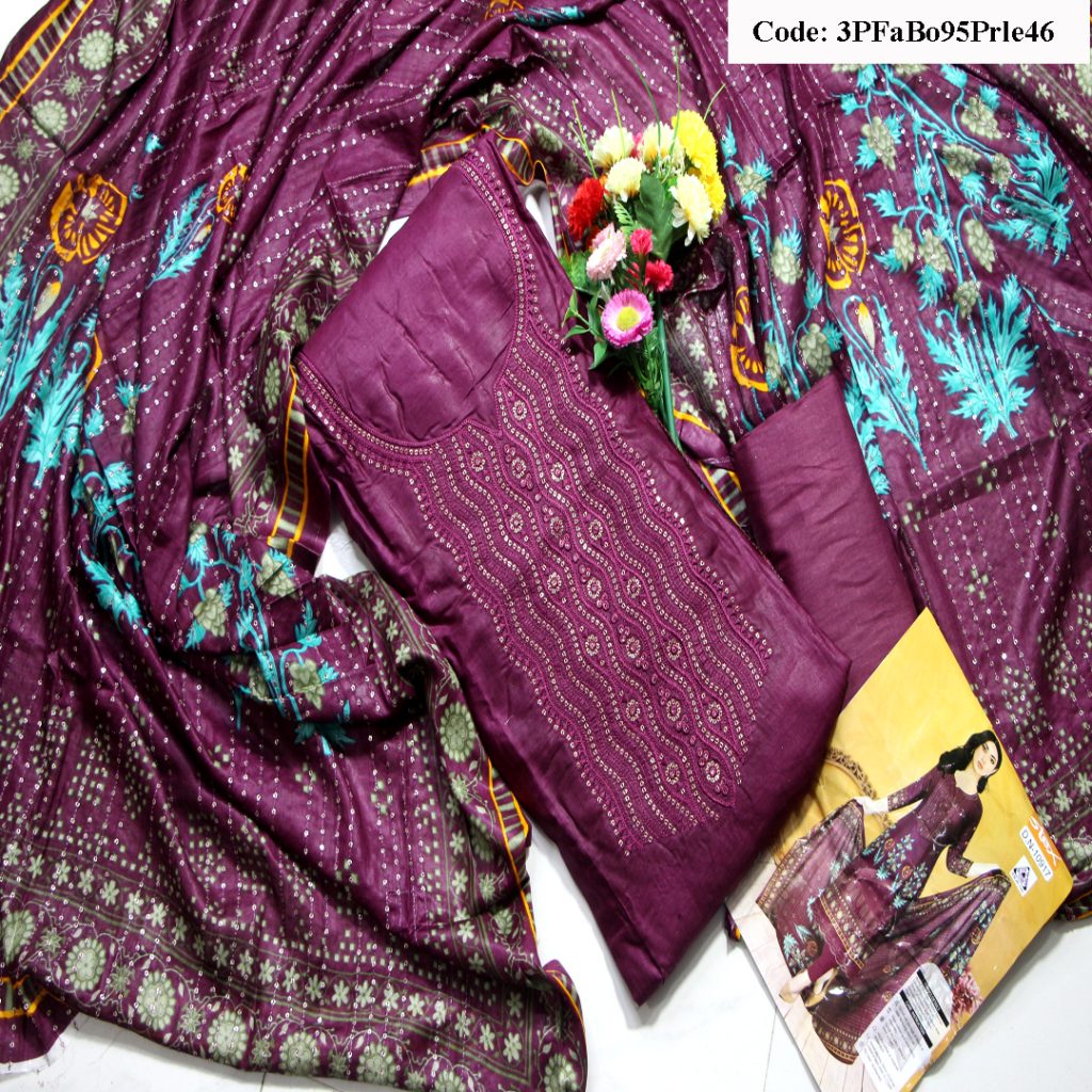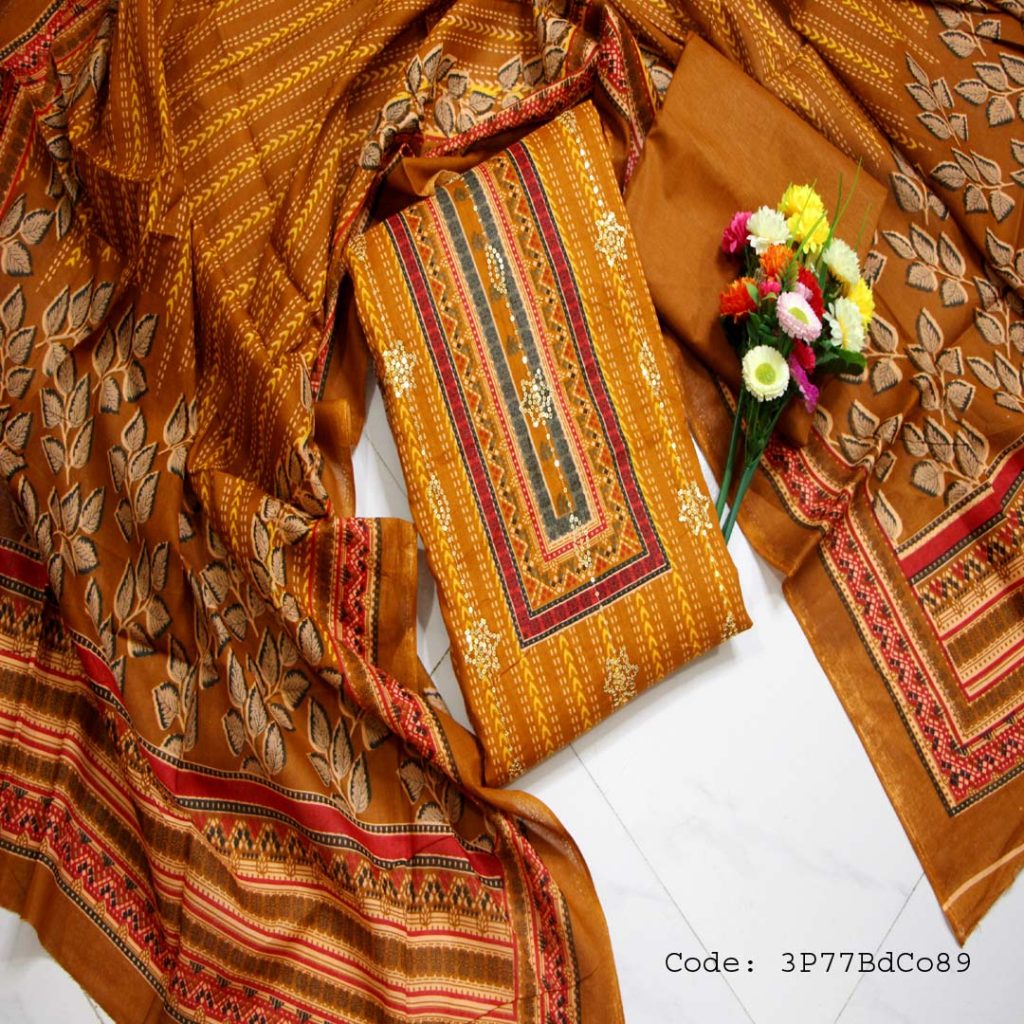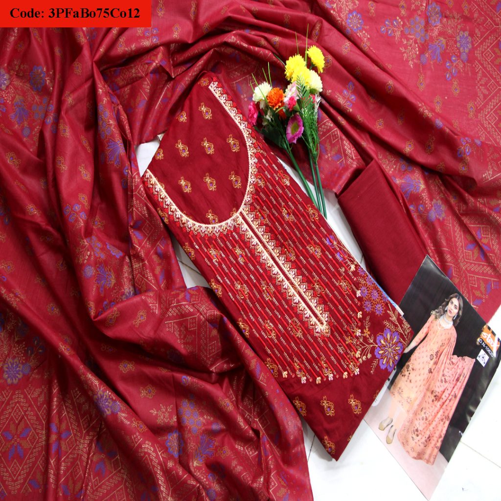 বুটিক থ্রি পিস- ডিজিটাল প্রিন্ট রং ও আফসান গ্যারান্টি কাপড়: ১০০% কটন