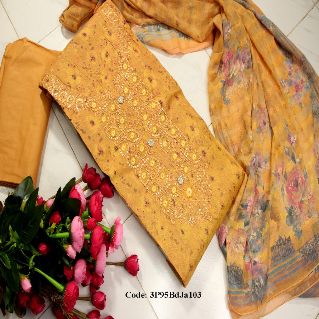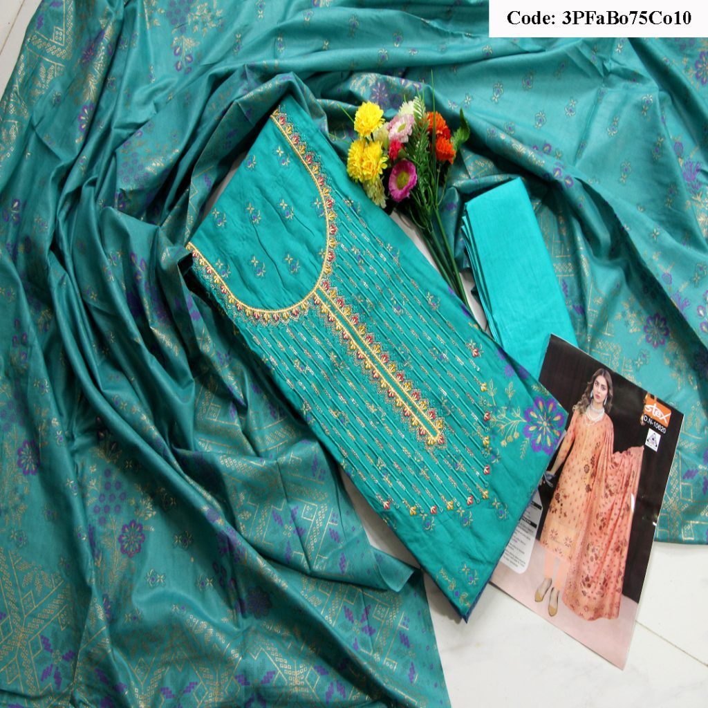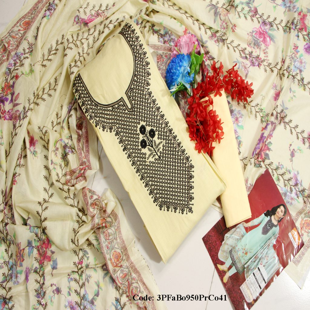 বুটিক থ্রি পিস- ডিজিটাল প্রিন্ট রং ও আফসান গ্যারান্টি কাপড়: ১০০% কটন