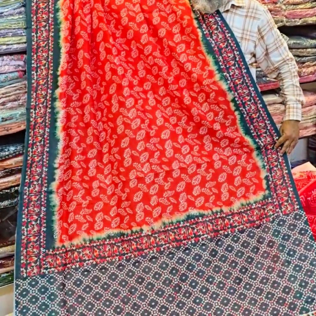 প্রিমিয়াম ভেজিটেবল চান্দিনী সিল্ক বাটিক শাড়ি